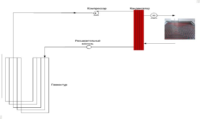 - Данная система имеет 2 контура вместо 3 в классическом Тепловом насосе. Она дешевле, проще надежнее
