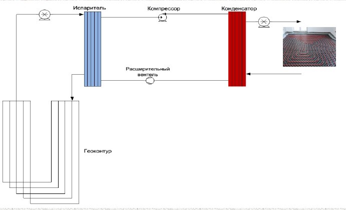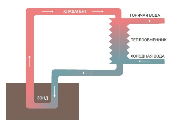 Он забирает тепло у земли и передает в систему отопление здания.
